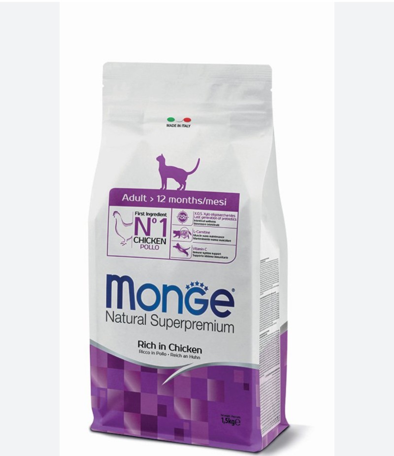 Monge Sterilised, azaldılmış kalorili sterilizasiya olunmuş Pişiklər üçün Piylənmənin qarşısını alan tam, balanslı bir pəhrizdir. İmmunitet sistemini qorumaq üçün E vitamini kimi vacib antioksidanları ehtiva edir. Yemdəki orta yağ tərkibi artıq bədən çəkisinin yığılmasının qarşısını alır və daha çox kilo almağın qarşısını alır. Məzmun X. O. S. bağırsaq mikroflorasının təbii tarazlığını qorumağa kömək edir, qida maddələrinin optimal mənimsənilməsinə kömək edir və toxunulmazlığı artırır. Liflə zənginləşdirilmişdir. Pişik qidasında Lifin ən vacib faydalarından biri də heyvanın çəkisini idarə etmək qabiliyyətidir. Yemə lif, yavaş fermentasiya əlavə etmək piylənmənin qarşısını alır və arıqlamağa kömək edir. Tük gözəlliyi və dəri sağlamlığı üçün omeqa-3 və omeqa-6 yağ turşuları. Yemdəki omeqa-3 və omeqa-6-nın optimal tarazlığı dərinin və paltonun ən yaxşı vəziyyətdə qalması üçün son dərəcə vacibdir.