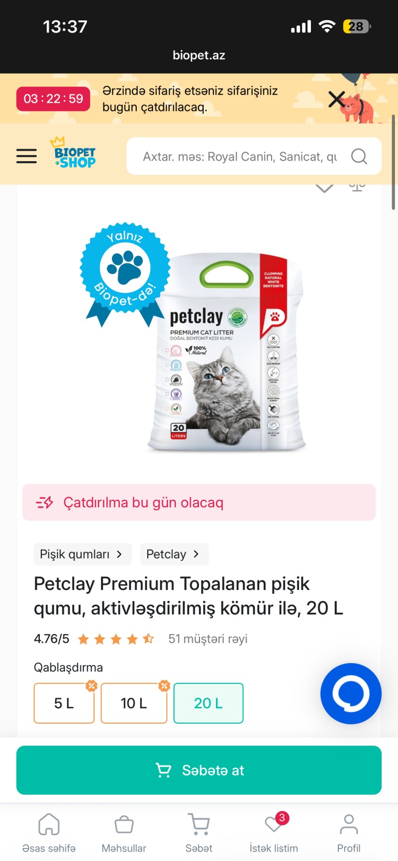 16.08.2025Bu pişik qumu çox keyfiyyətlidir. Daha əvvəl də almışdım və yenidən seçdim. Tövsiyə edirəm!