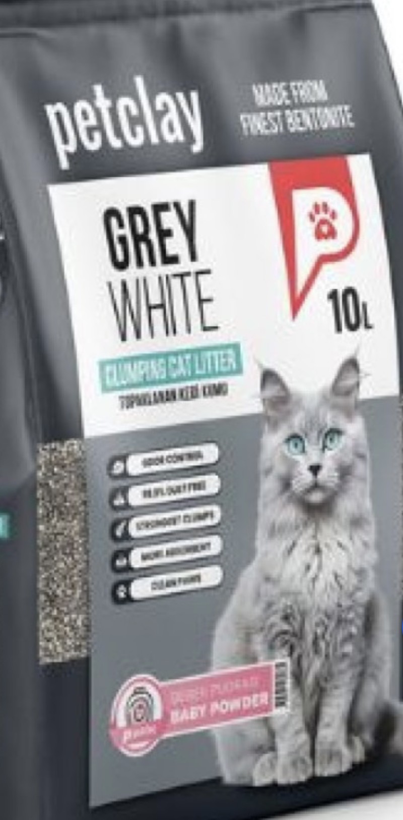 Petclay Grey-White (boz-ağ) topalanan pişik qumu bentonit gildən hazırlanmış premium qum növüdür. Bu qum pişiyinizin tualetə getməyini komfort şəkildə həyata keçirməsi üçün bir sıra üstünlüklərə malikdir: