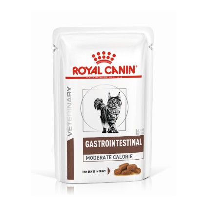 Royal Canin Gastrointestinal Moderate Calorie Feline Pişik üçün həzm pozulmasında baytarlıq pəhrizi. Yetkin pişiklər üçün tam rasionlu nəm yem pankreatit və kəskin həzm xəstəliklərində tövsiyə olunur. Baytarlıq pəhrizi. Yüksək həzm olunan zülalların (L. I. P. zülalları), prebiotiklərin, çuğundur lətisinin, düyü və balıq yağının birləşməsi həzm sistemi üçün maksimal müdafiəni təmin edir. Pəhrizdə orta enerji dəyəri yalnız pankreatit üçün tövsiyə edilmir, həm də sterilizasiya edilmiş və ya artıq çəkili heyvanlarda bədən çəkisini idarə etməyə kömək edir. Həzm problemlərində zəif iştaha və çəki azalmasına tez-tez rast gəlinir. Yemin dadı iştahanı stimullaşdırır və çəkinin bərpa olunmasına kömək edir. Uzun zəncirli omeqa-3 yağlı turşuları (eicosapentaenoic və docosahexaenoic) dəri reaksiyalarını azaldır və bağırsağın selikli qişasının bütövlüyünü qoruyur.