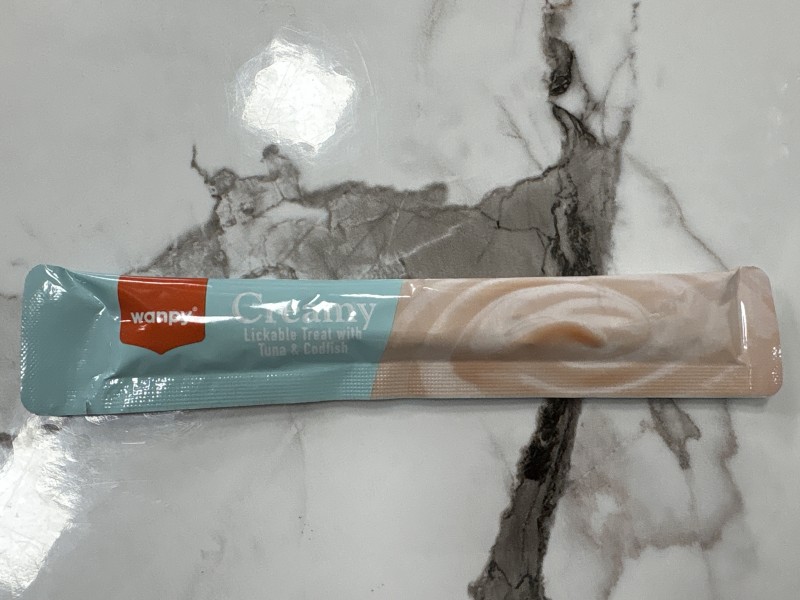 Wanpy Pişik üçün krem çərəz, tuna balığı və treska ilə. Ən kaprizli pişiyi belə sevindirən ləzzət! Dadlı çərəzi yem qabına sıxmaq, çərəz üçün oyuncaqda vermək və ya dərhal əlinizdən yedizdirmək olar. Tərkibində rəngləndirici və dadvericilər yoxdur. Yaxşı həzm olunur və tükü parlaq edir. Bir qablaşdırmaya hər biri 14 qram olmaqla 5 ədəd krem şəklində çərəz daxildir.
