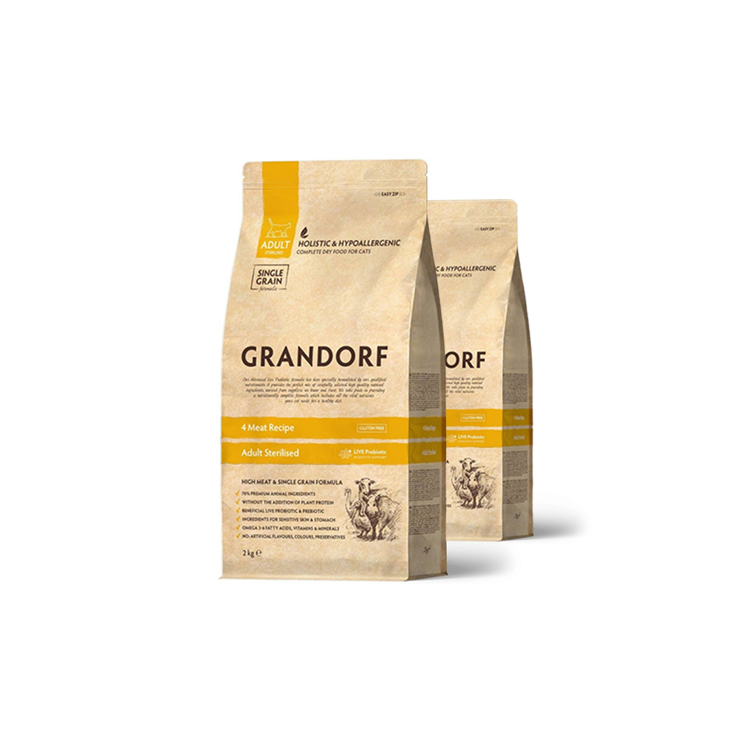 Grandorf Сухой корм для стерилизованных кошек, четыре вида мяса