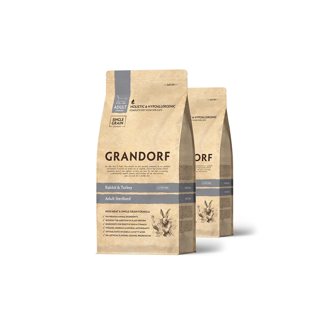 Grandorf Single Grain Sterilised Сухой корм для стерилизованных кошек, с кроликом и индейкой