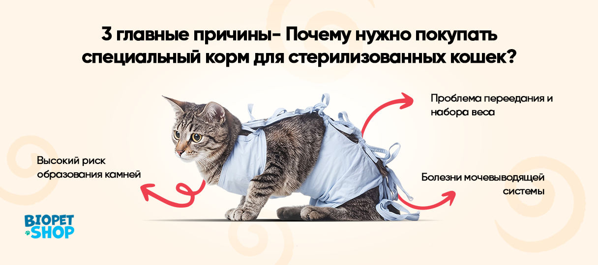 Покупка специального корма для стерилизованных кошек неизбежна, ведь организм подвергается изменениям. Снижение активности и замедление метаболизма кастрированного питомца приводит к набору веса. Активность в области половой охоты сменяется повышенным аппетитом и частым выпрашиванием пищи. Редкое мочеиспускание и несбалансированный по минералам корм увеличивает риски проблем с мочевыводящими путями.