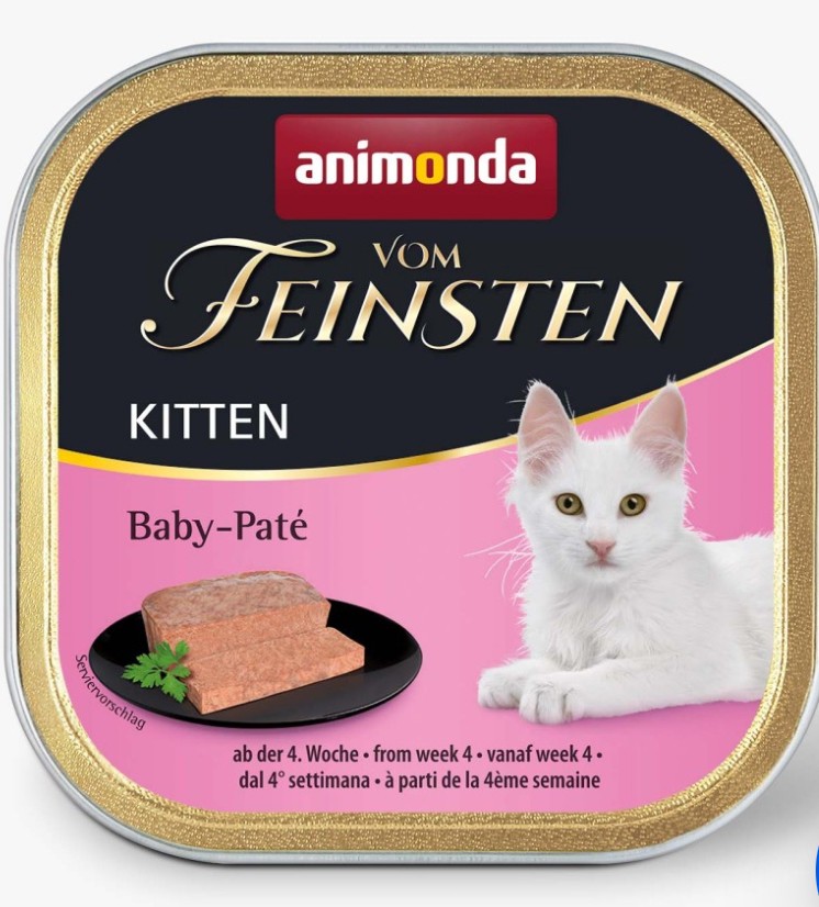 Vom Feinsten Kitten Baby Paté идеально адаптирован к пищевым потребностям растущих котят с 4-й по 16-ю неделю их жизни. Корм имеет мягкую, кремообразную консистенцию и помогает молодым котятам осуществить переход с материнского молока на твердую пищу.