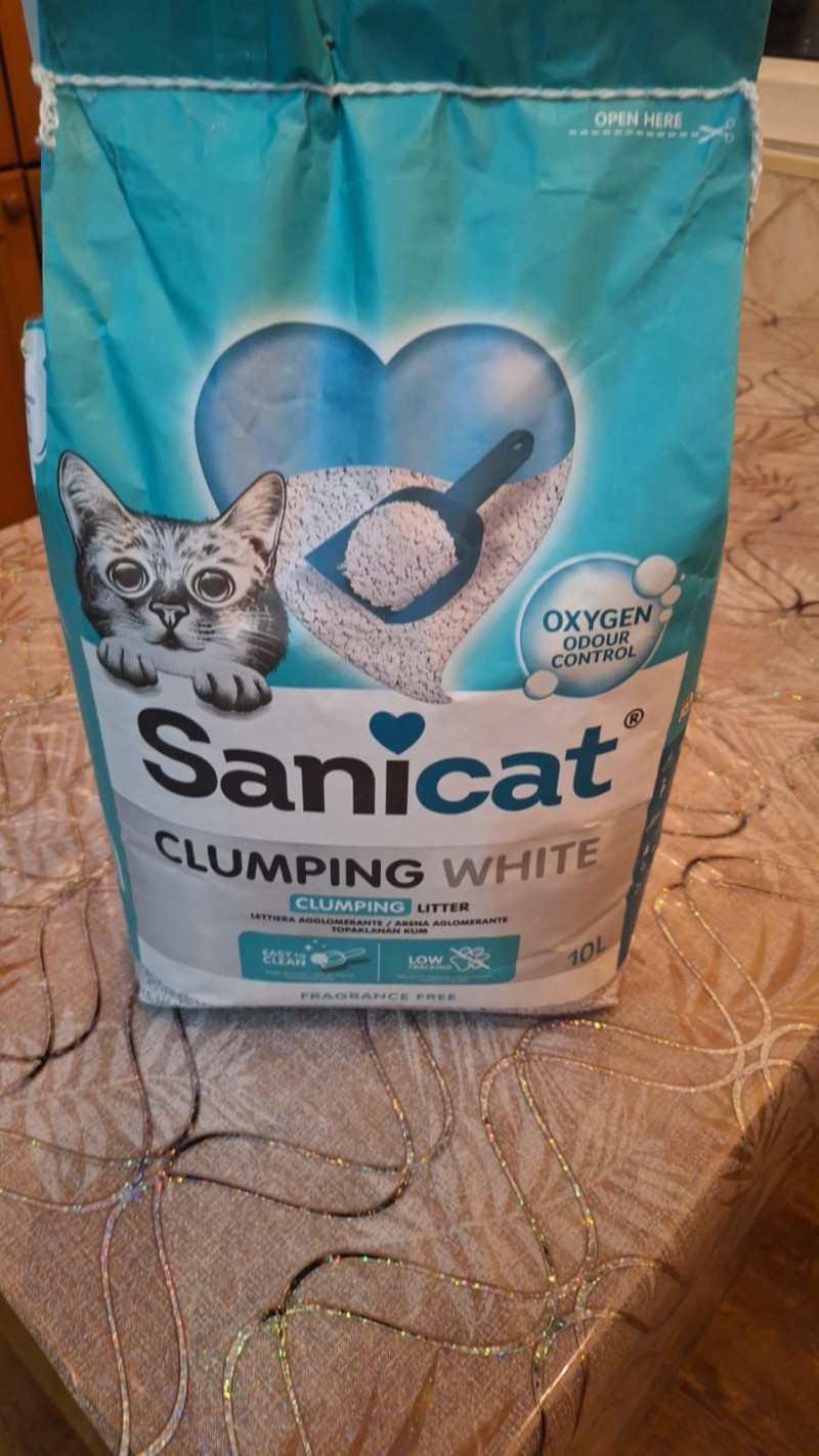 Sanicat Clumping White - высококачественный комкующийся наполнитель для кошачьего туалета. Без запаха. Обогащен кислородом для предотвращения неприятных запахов. Без пыли.